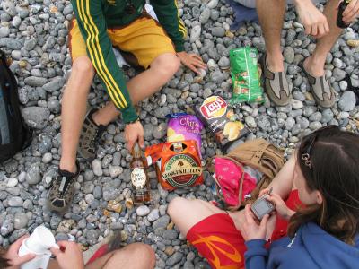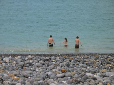 Damit es auch nicht zu langweilig wird.. darf ein Bad im frischen Ärmelkanal nicht fehlen. Nicht zu vergessen die gratis Fußmassage die diesen Badespass zu einem unvergesslichen Erlebnis gemacht haben. Das nächste mal wenn ich in ein Reisebüro gehe und nach dem nächsten Zug zum Strand frage...werde ich der dame hinterm schalter... ein konkrete Diffinition liefern das ich bei Strand nicht an einen Kieswüste denke.. sondern an palmen und SAND. Aber die Franzosen sind in der Hinsicht wohl ein wenig lockerer. Im nachhinein lässt sich auch das Grinsen der Schalterdame auf die Frage "C'est une jolie plage?" richtig deuten.
